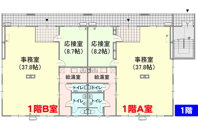 1階:95.64㎡(事務室37帖・応接室8帖・給湯室他)