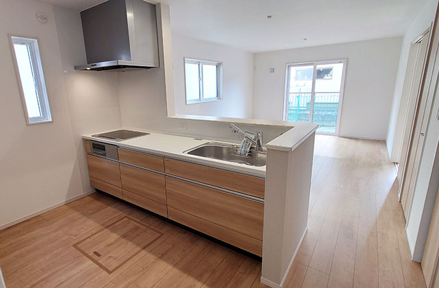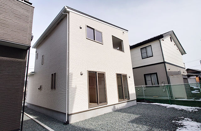 東北電力、公営水道、本下水、オール電化(IHクッキングヒーター、エコキュート370L)、システムキッチン、シャワー付洗面化粧台、浴室乾燥機付ユニットバス、外構、カースペース、高性能樹脂窓(Low-E複層ガラス)