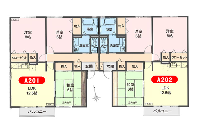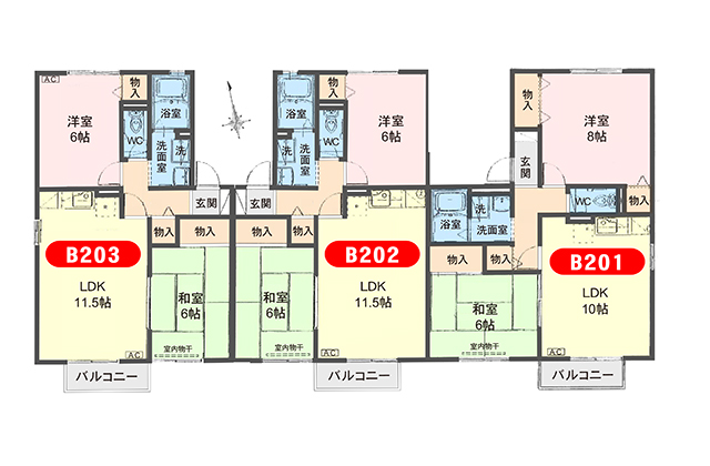 102、202、103、203:2LDK (LDK11.5 / 洋6 / 和6)