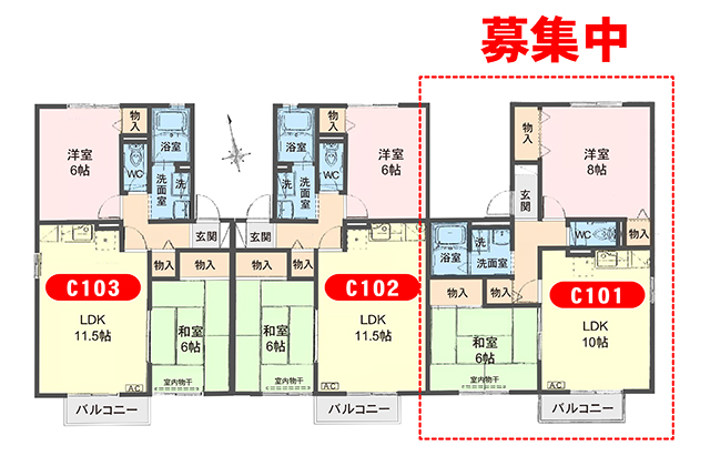101、102:2LDK (LDK10 / 洋8 / 和6)